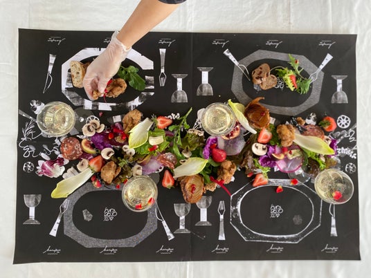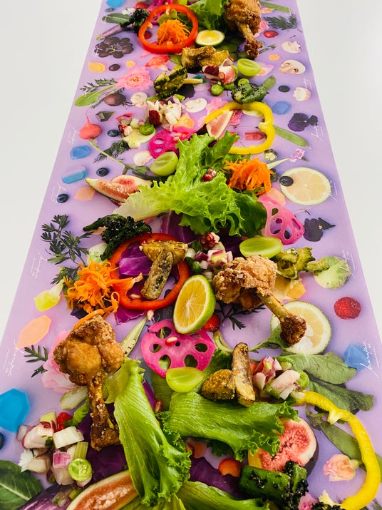 アイテム4⃣ テーブル全体がお皿に!サラダの道のような演出ができるアイテム「サラダロードシート」