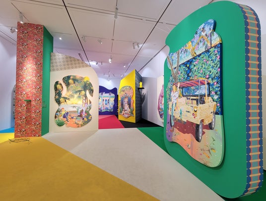 これまで上海やヴェネツィア、ロンドンなどで発表され、海外でしか見ることの出来なかった日本初公開作品や最新作19点など、代表作と合わせて40点以上が展示されます。壮大な絵画や空間に広がる巨大な立体など、松山智一の近年の作品群が東京・麻布台ヒルズ ギャラリーで一堂に会します。