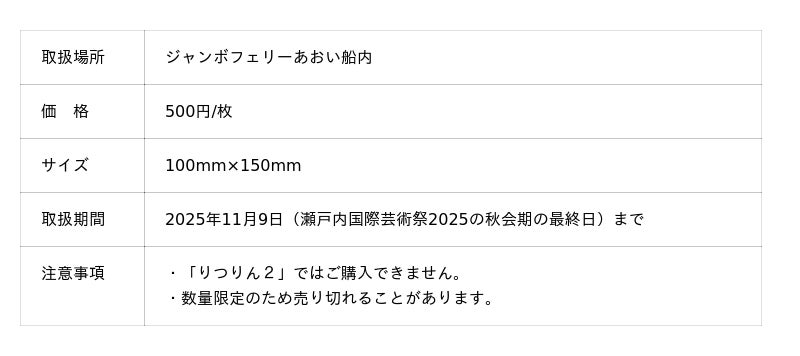 瀬戸内国際芸術祭2025の間の期間限定で販売