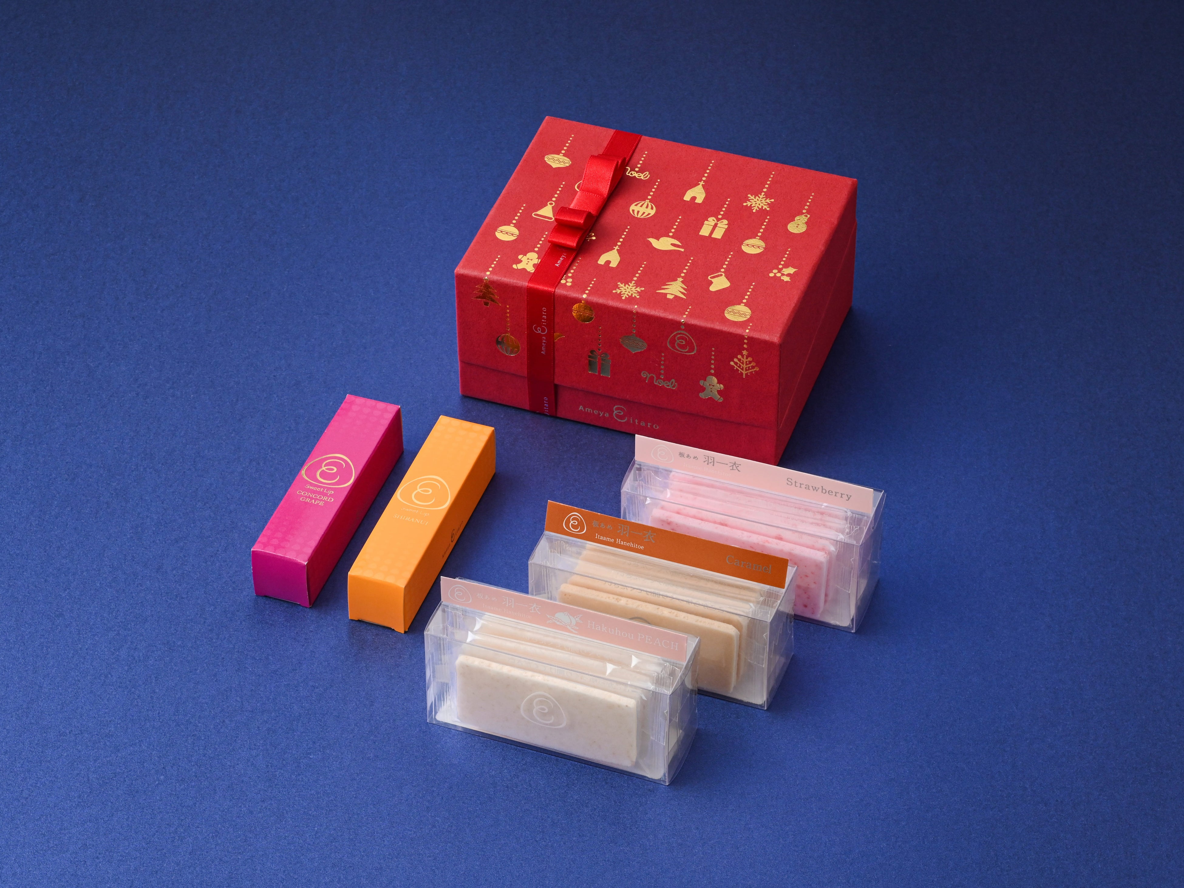 スイートリップ、板あめ、えいたろうあめを詰め合わせたクリスマス限定パッケージ