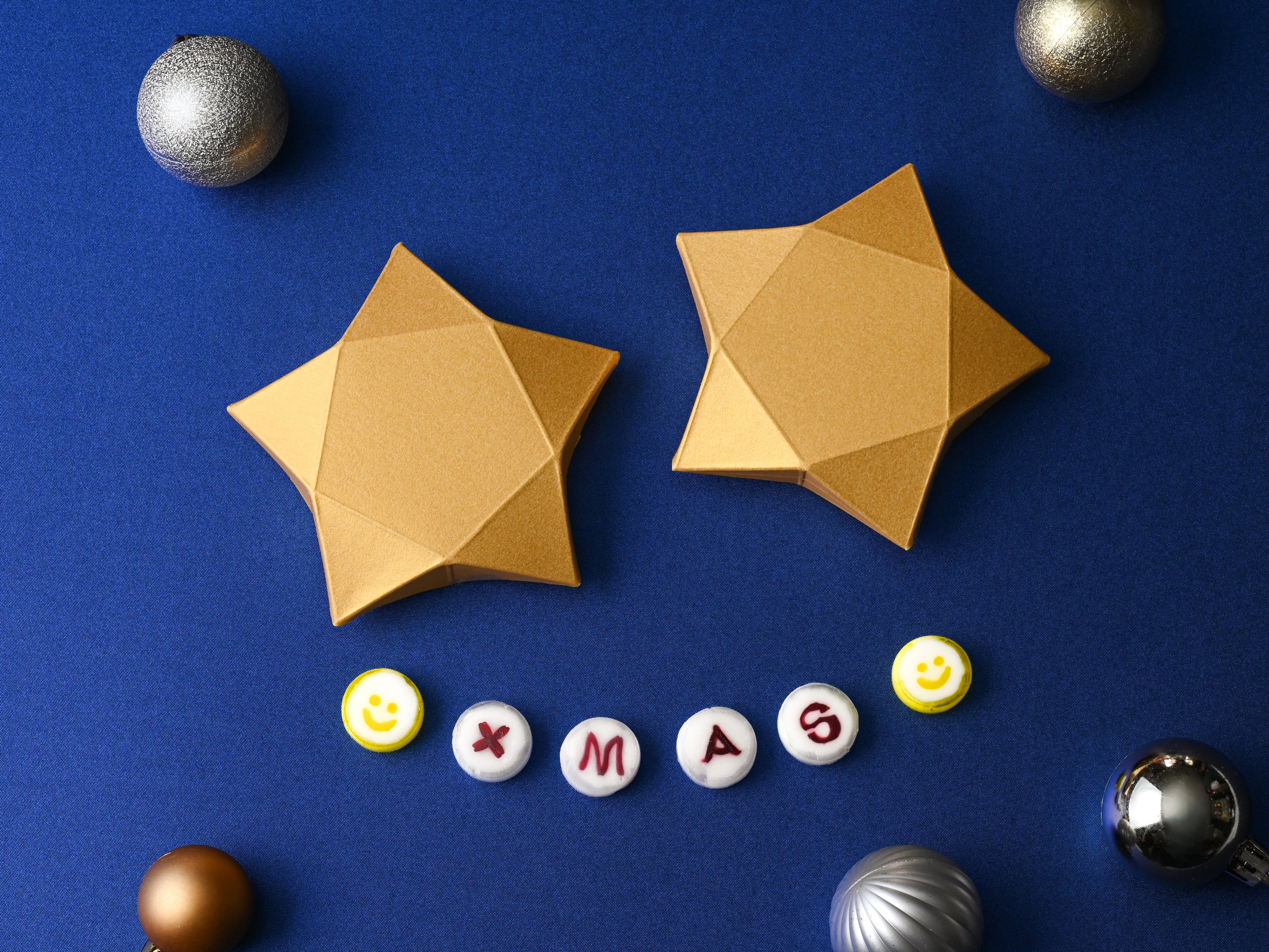 手のひらサイズの星形ケースに、「 XMAS 」の文字入りキャンディーを詰めました。