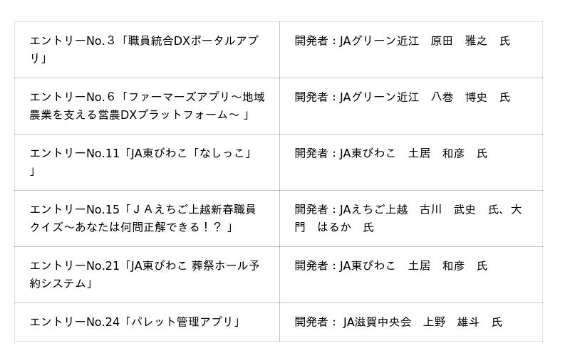最終審査に進出した6作品は、JAの現場課題を解決する実用的なアプリです。