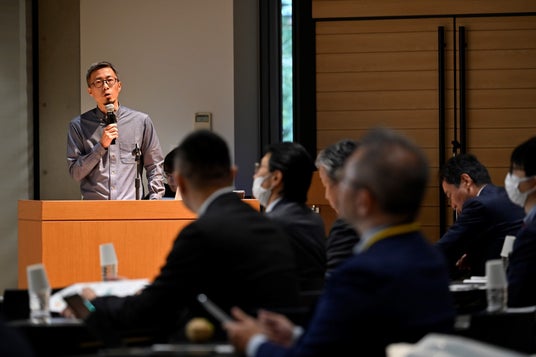 写真=記念講演をする千葉商科大学の小口広太准教授