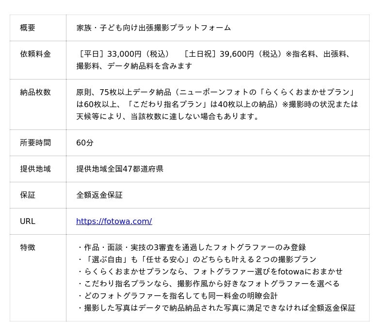 ■ 家族・子ども向け出張撮影プラットフォーム「fotowa」について