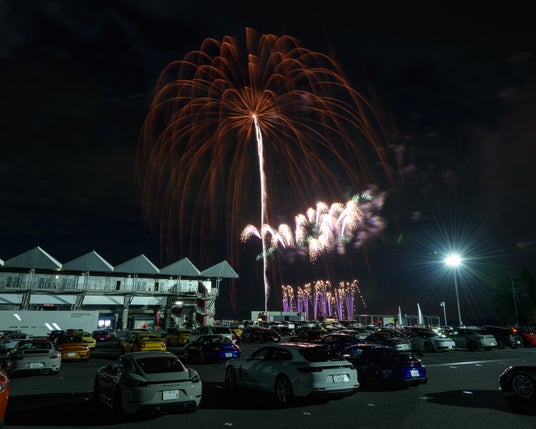 「富士山花火vsスピードウェイ」は、富士スピードウェイを中心に様々なモビリティ体験を提供する複合エリア「富士モータースポーツフォレスト」と連携した大規模花火イベントです。富士山の目前で打ち揚がる世界最高峰の花火と、国際サーキット「富士スピードウェイ」を舞台に繰り広げられるモータースポーツとの“競演”は、他に類を見ない新感覚のエンターテインメントです。