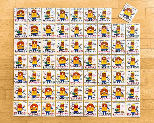 『もぐらけんせつ あなぐましまいのドーナツトンネル』の発売に際して、作者の長崎真悟さんが描いた直筆ミニ色紙が、応援書店さんの店頭を飾ります。