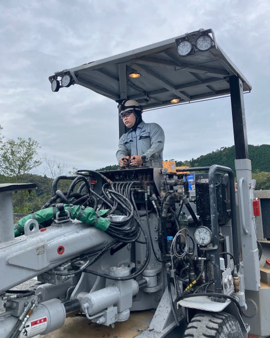 お言葉をお寄せくださったのは、特機部技術課の池永将己(いけなが まさき)さんです。ふだんのお仕事についてうかがうと、「ドリルジャンボの調整や使い方をお客様に説明したりしています。」と教えてくださいました。