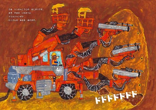 池永さんがふだんふれているドリルジャンボが絵本になったことについては、「トンネルを掘る機械は、普段あまり目にすることができないので、絵本になったことによって、より多くの人々にドリルジャンボやトンネルの作り方を知って頂く機会が増えて嬉しいです。」とのこと。