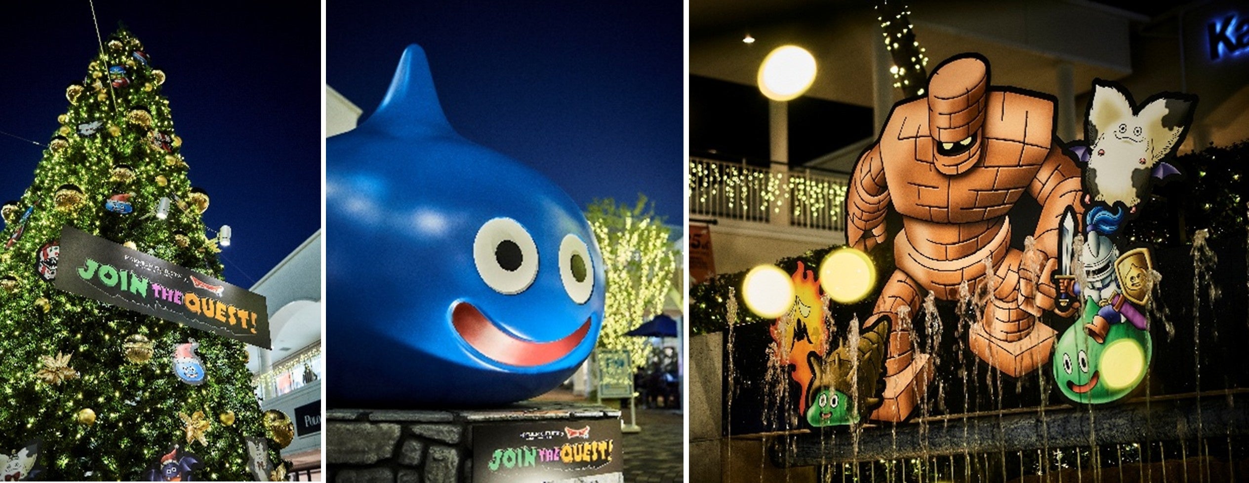 さらに、プレミアム・アウトレットと「ドラゴンクエスト」のコラボイベント『JOIN THE QUEST!』も開催中。様々な人気モンスターで装飾されたオリジナルクリスマスツリー、高さ約2mの巨大な「スライム」のオブジェや、「ロトのつるぎ」のオブジェに加え、りんくうプレミアム・アウトレットには「キラーパンサー」「ゴーレム」「ばくだんいわ」「スライムタワー」のオブジェも特別に登場しています。