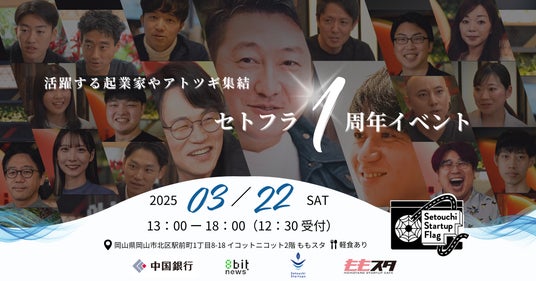 映像メディア「セトフラ (正式名称:Setouchi Startups Flag)」を配信するSetouchi Startups株式会社(住所:岡山市北区平和町、代表:藤田圭一郎、山田邦明、以下「当社」)は、3月22日開催のセトフラ1周年イベントにおける登壇者が決定したことをお伝えいたします。