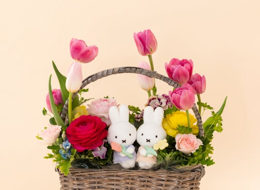 持ち歩いても飾っても印象的な、季節のお花を持った「ミッフィー」たち。花言葉に気持ちを乗せて、大切な人へお贈りください。