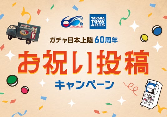 タカラトミーグループの株式会社タカラトミーアーツ(代表取締役社長:近藤 歳久/所在地:東京都葛飾区)は、 2025年に「ガチャ(R)」(カプセルトイ)が日本上陸60周年を迎えることを受けて、2月17日(月)の「ガチャの日」より60周年の展開をスタートいたします。まずはじめに「ガチャ日本上陸60周年プロジェクト」のアニバーサリー企画第1弾として、SNSでの投稿キャンペーンを実施いたします。また、ガチャから生まれた新フィギュアシリーズ「PERIHAPI!(ペリハピ)」の展開も開始いたします。
