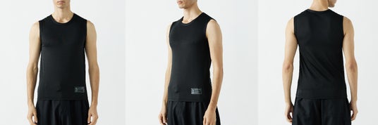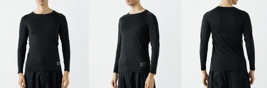 これまでのメッシュ編みのウェアとは違い、ほつれにくく耐久性がアップ。見た目も一般的なコンプレッションウェアなので、ベースレイヤー(ファーストレイヤー)としてだけでなく、これ1枚での着用も可能になりました。