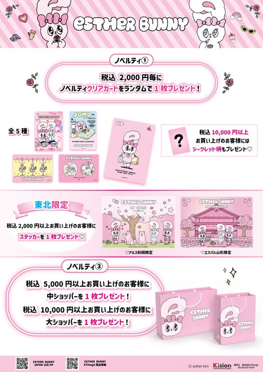 さまざまなキャラクターグッズを企画・販売している株式会社KThingS(東京都中央区)は、東北4県にて『エスターバニーPOP UP STORE』を開催いたします。
