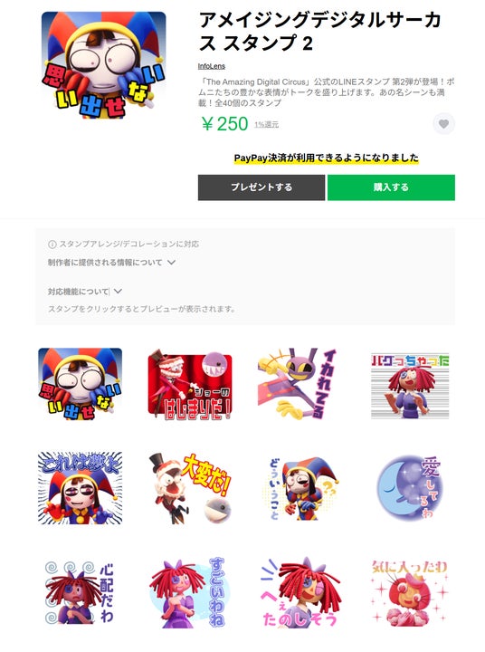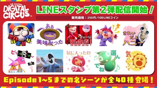 エンターテインメント関連商品を輸入・製造販売するインフォレンズ株式会社(本社:東京都中央区、代表取締役CEO:安川 洋)は、世界的に注目を浴びている人気のダークコメディCGアニメーション「The Amazing Digital Circus(アメイジングデジタルサーカス)」のLINEスタンプ第2弾の販売を開始したことを発表します。
