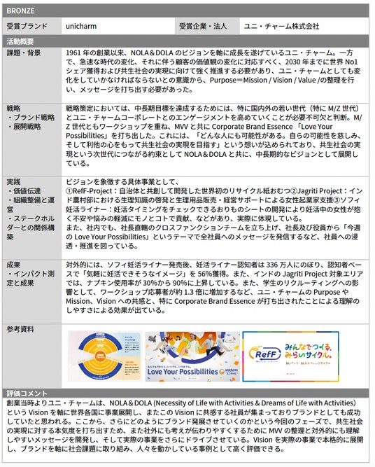 - “BRONZE”は、KAMIKATZ、LION、unicharmを選出