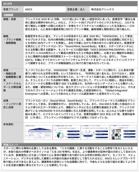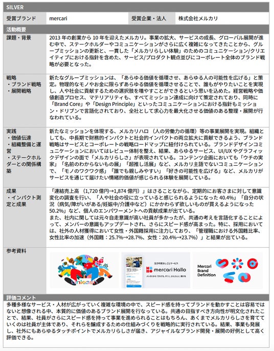 - “SLIVER”は、ASICS、mercari、YANMARを選出