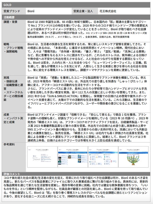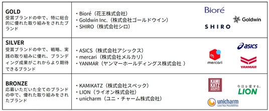 - アワード最高賞の “GOLD” は、Biore、Goldwin Inc.、SHIROが受賞