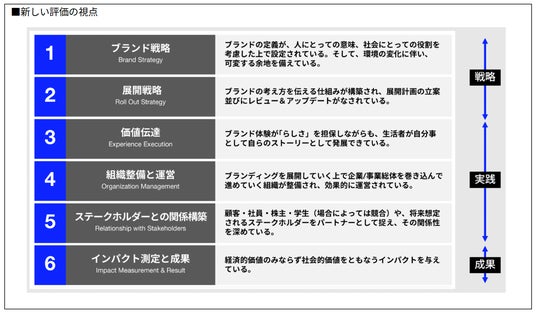 アップデートのプロセスにおいては、流動化する世の中の多面的なトレンドや、ビジネスのリアリティを反映すべく、各界の有識者や日本を代表するブランドのリーダーが一堂に集う場で議論を行い、弊社の一義的な視点に留まらない「共創プロセス」を選び、検討を重ね、新たな評価視点を構築しました。