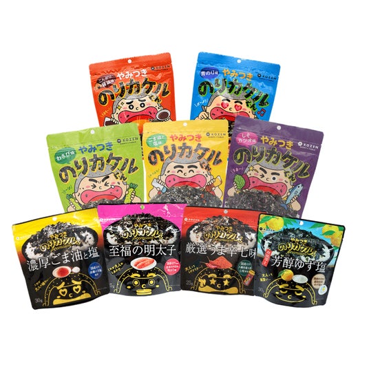 何気ない食卓に海苔を通じてHAPPYを届けていきたい。そんな想いからオンザテーブル商材としてふりかけタイプの味付け海苔を開発。大人から子供まで親しんでもらえるパッケージを心がけています。カケルくんシリーズは全部で9種類。