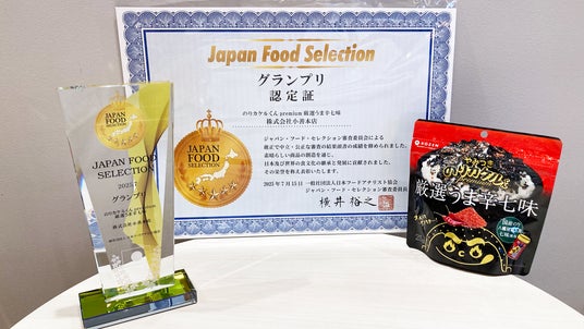 創業131年目を迎える海苔メーカー株式会社小善本店(本社:東京都台東区、代表取締役社長:小林善昭)が展開している「のりカケルくんpremium厳選うま辛七味」が、2025年07月15日(火)にジャパン・フード・セレクションで最も評価が高いグランプリを受賞いたしました。