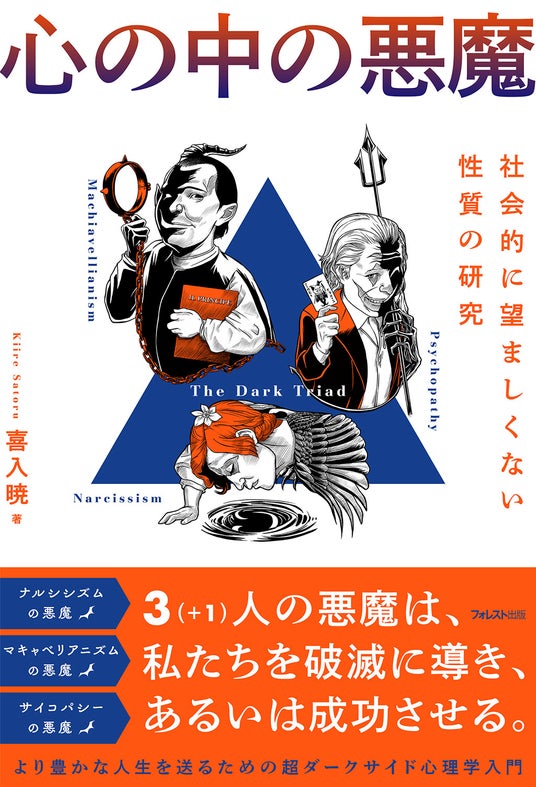 フォレスト出版株式会社(所在地:東京都新宿区、代表取締役:太田 宏)は、『心の中の悪魔』(喜入 暁・著)を2025年1月27日(月)より順次発売します。本書は、心理学において現在進行形で活発に研究が進められている最新テーマの1つ「ダークトライアド」の心理・行動パターンとの関連を一般向けに解説している一冊です。