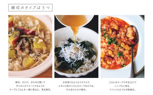 「えっ、雑炊……?」そんなふうに感じる人ほど「美味しそう」が止まらないレシピの数々。制作スタッフも調理の手軽さを疑うほどの美味しさに驚き、しあわせ溢れる食体験に大感動――