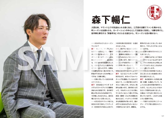 選手インタビューコーナーでは、森下暢仁、黒原拓未、矢野雅哉、末包昇大、田村俊介といった今年のカープを引っ張っていく選手たちが登場。また、OBインタビューでは、2020~2022年までカープの監督を務めた佐々岡真司氏が今年の展望について熱く語ってくれています。そして、球団の裏方にスポットを当てるインタビューでは、カープグッズを手掛ける企画デザイン室デザインチームの光嶋佑紀氏&奥本明日香氏のお二人に話をうかがいました。