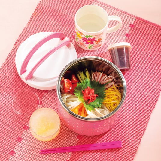 【冷やし中華】暑い日の定番、冷やし中華。しっかり冷やしたスープジャーに好きな具をのせて麺を入れたら、タレは別添えで冷やして持参。食べるときにかけていただきます!
