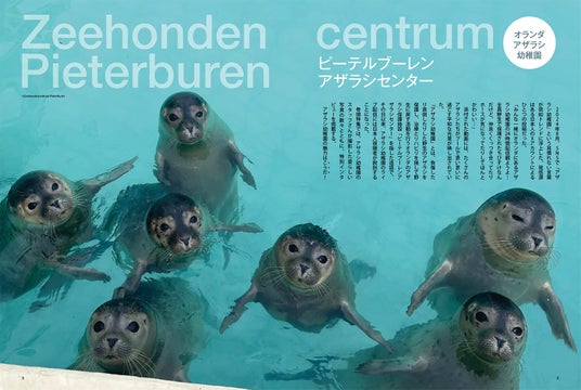 『アザラシまるごとBOOK』では、日本とオランダにおけるアザラシ保護活動を紹介しています。「アザラシ幼稚園」はオランダにあるアザラシ保護施設「ピーテルブーレンアザラシセンター」の愛称で、YouTubeの24時間ライブ配信を多くの日本人が視聴しています。病気や負傷、人工物が原因で衰弱したり、孤児となってしまったアザラシを保護し、治療、リハビリを施して海にリリースする活動を行っています。この4月に世界遺産ワッデン海を望む新施設WECに移転。アザラシの保護活動と環境保全の啓蒙にさらに力を注いでいます。