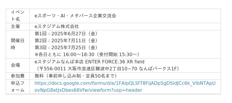 株式会社Meta Heroes(本社所在地:大阪府大阪市、代表取締役:松石和俊、以下「当社」)は、eスタジアム株式会社が主催する「eスポーツ・AI・メタバース企業交流会」(第1回:2025年6月27日開催)において、弊社AI研修トレーナー・松山利基が登壇することをお知らせいたします。