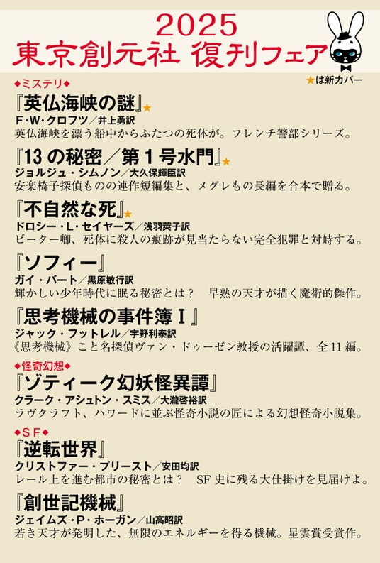 ファン待望の恒例企画!東京創元社の「復刊フェア 2025」を開催!