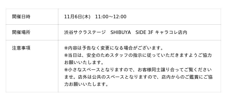 ◆Shibuya Sakura Stage SHIBUYAサイド 3階 「キャラコレ」