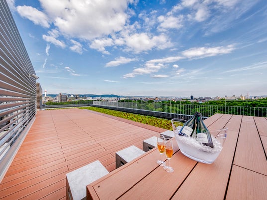 ▲「Roof Top Terrace」 東寺や京都タワーも眺められる開放空間。テーブル、チェアもあり