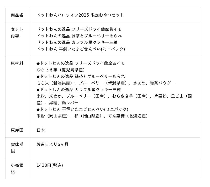 株式会社ピュアボックス(所在地:岡山県岡山市、代表取締役:淺沼悟)が展開するドッグフードブランド「ドットわん」(以下、ドットわん)は、新商品「ドットわんハロウィン2025 人気おやつセット」と「ドットわんハロウィン2025 限定おやつセット」を、全国のペットショップおよび自社ECサイトにて2025年9月1日(月)に発売します。