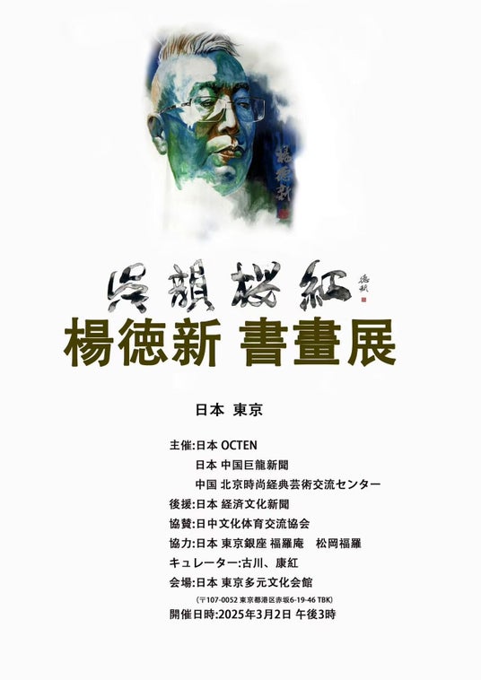 2025年3月2日、東京・六本木にある多元文化会館にて、日本OCTEN、日本中国巨龍新聞、北京時尚經典芸術交流センターの共催で「呉韻桜紅--2025 中国・楊徳新書画展(東京展)」が開催されました。本展では、中国の著名な芸術家・書道家である楊徳新氏の作品を通して、東京において日中芸術家同士の文化交流のプラットフォームになることを目的としており、当日は多くの来場者や関係者が来場し、高い評価を得ました。