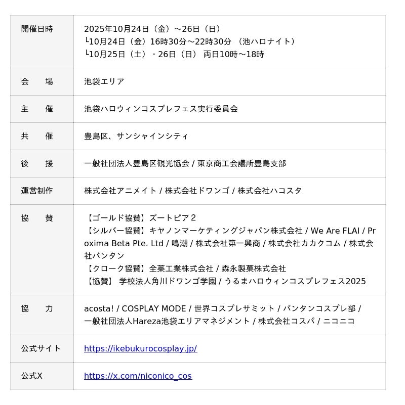 「池袋ハロウィンコスプレフェス2025 Powered by dwango」開催概要