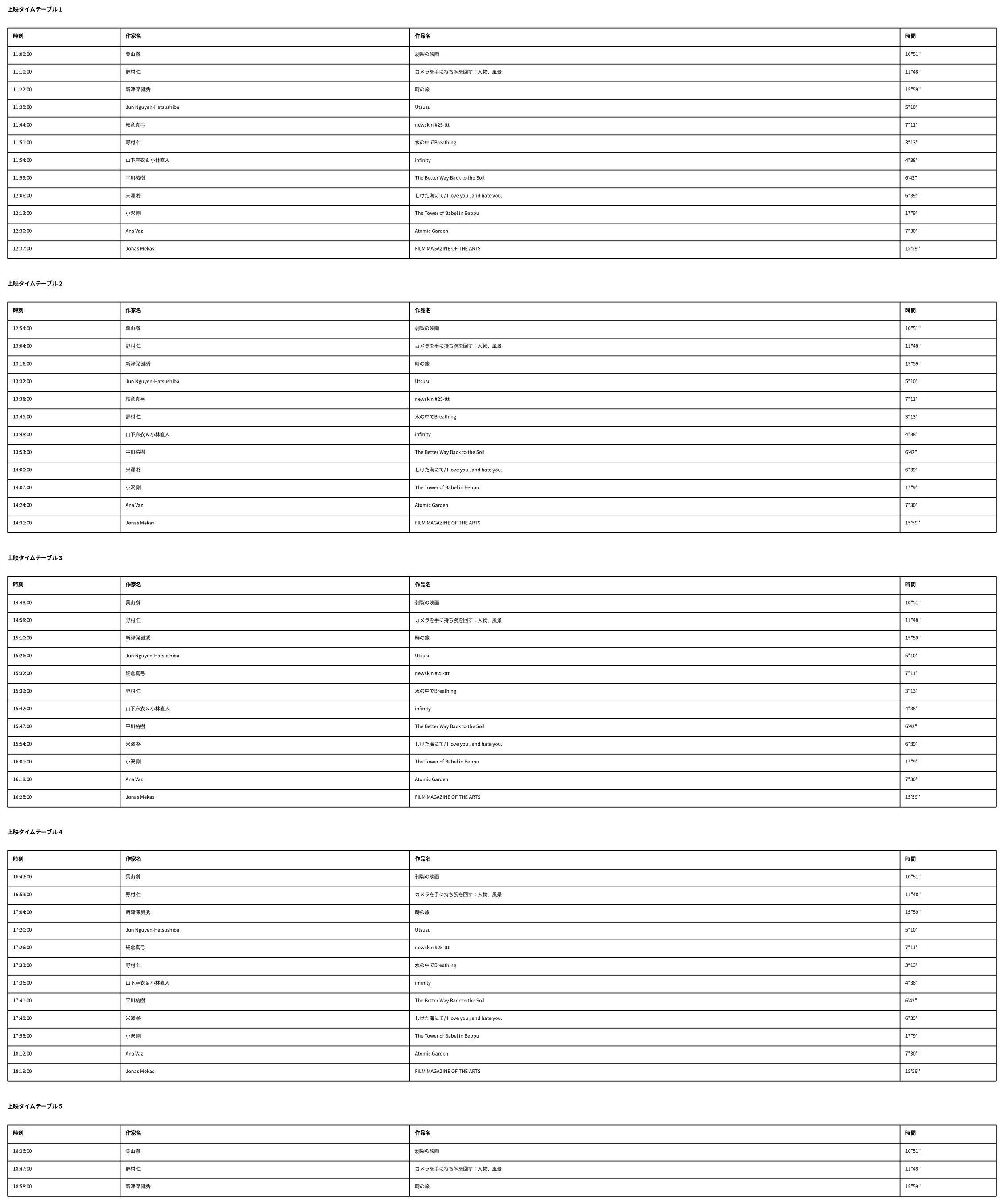 プログラムタイムテーブル