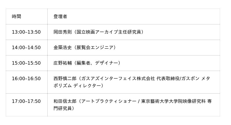 オフィシャルサイトのインタビューでは、放送・災害情報の実装、実験映画の上映実践、越境的アーカイビングや修復、制度とインディペンデント双方のキュレーションといった多様な領域から、映像を生かし続けるための知見を共有します。掲載インタビュー(対象者プロフィール・短縮版/敬称略)