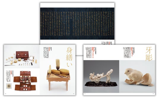 由緒を感じる「御宸翰」、教科書にも載っている「物語絵」、貴重な「仏典」に歴史の生き証人ともいうべき「文書」。さらには、皇族が常用していた「身繕い」のお道具、今では作ることができない「牙彫」などをご覧いただけます。