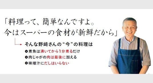 「簡単なのにとびきりおいしく作りたい」というニーズにお応えし、このたび世界文化社が立ち上げた「一流シェフの簡単でおいしい料理の教科書」シリーズ。第一弾は2冊同時発売!その1冊で教えてくれるのは、和食料理人・野崎洋光さん。「だしはいらない」「煮魚は沸いてから1分煮るだけ」など、気楽に作れるから毎日の家庭料理が楽しくなる61品をご紹介します。