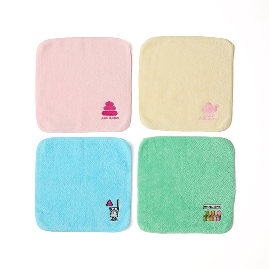 うんこミュージアムのモチーフが刺繍されたタオルです。手を洗った後は、このタオルで可愛く拭きましょう。