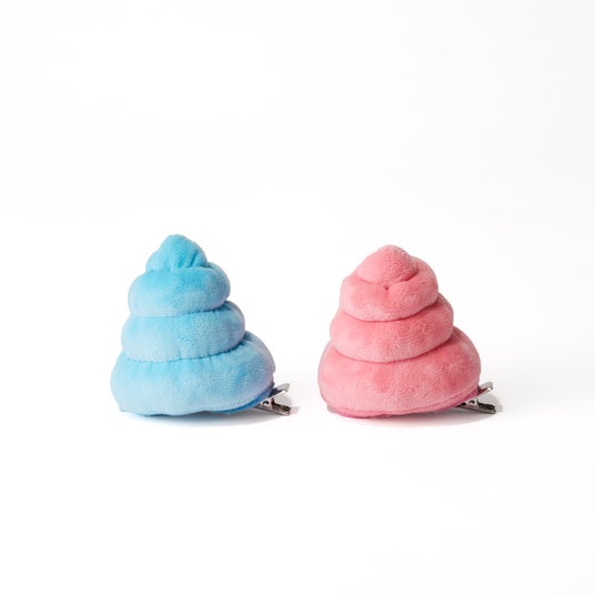 うんこで髪を留めることができるヘアクリップです。ピンク、ブルーの2種を用意。