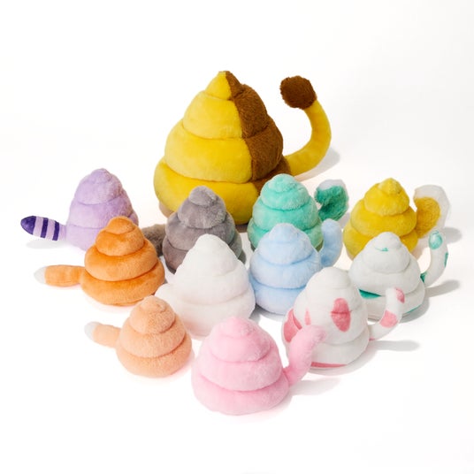 コロンとした3段の身体に、ふさふさの毛並み、モフモフのシッポ。そんなうんこ動物たちがぬいぐるみになりました。全12種。ぜひあなたのおうちにお迎えして、なでたり、抱きしめたり、可愛がってあげましょう。