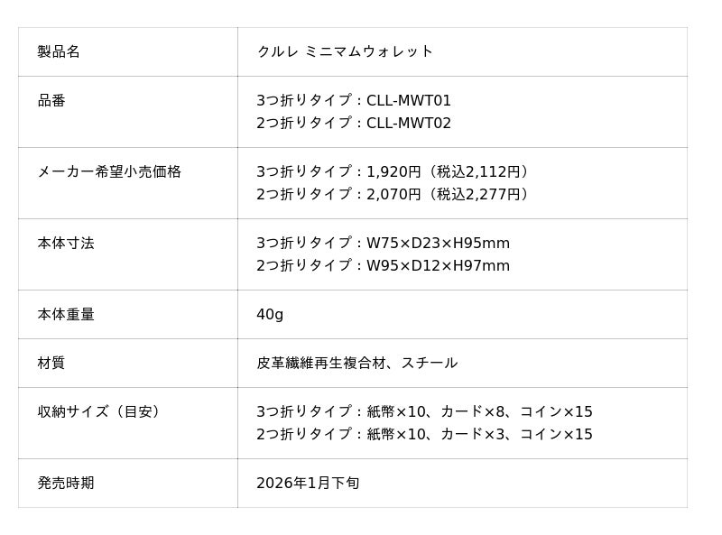 - 使いやすく大容量なのにコンパクトな3つ折りタイプと、ポケットに入れても気にならない極薄仕様の2つ折りタイプの2種類をラインアップ