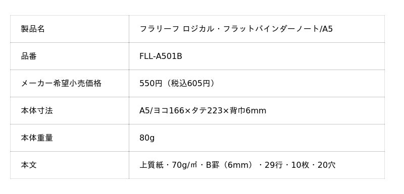 2.フラリーフ ロジカル・フラットバインダーノート/A5サイズ