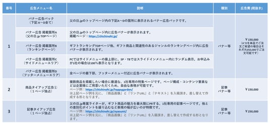 父の日.jp 2025年広告メニュー