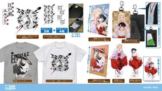 『江戸前エルフ』より、原作イラストを使用した「エルダ」「小糸」のTシャツやアクリルスタンド、