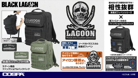 運び屋の必需品!『ブラック・ラグーン』より、『ラグーン商会』の多機能「バックパック」、『ソードカトラス』のスカルマークを刺繍で表現した「ワッペン」が登場!【株式会社コスパ】