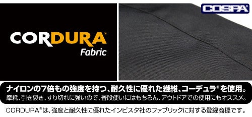 ・ナイロンの7倍もの強度を持つ、耐久性に優れた繊維、コーデュラ(R)を使用。摩耗、引き裂き、すり切れに強いので、普段使いにはもちろん、アウトドアでの使用にもオススメ。